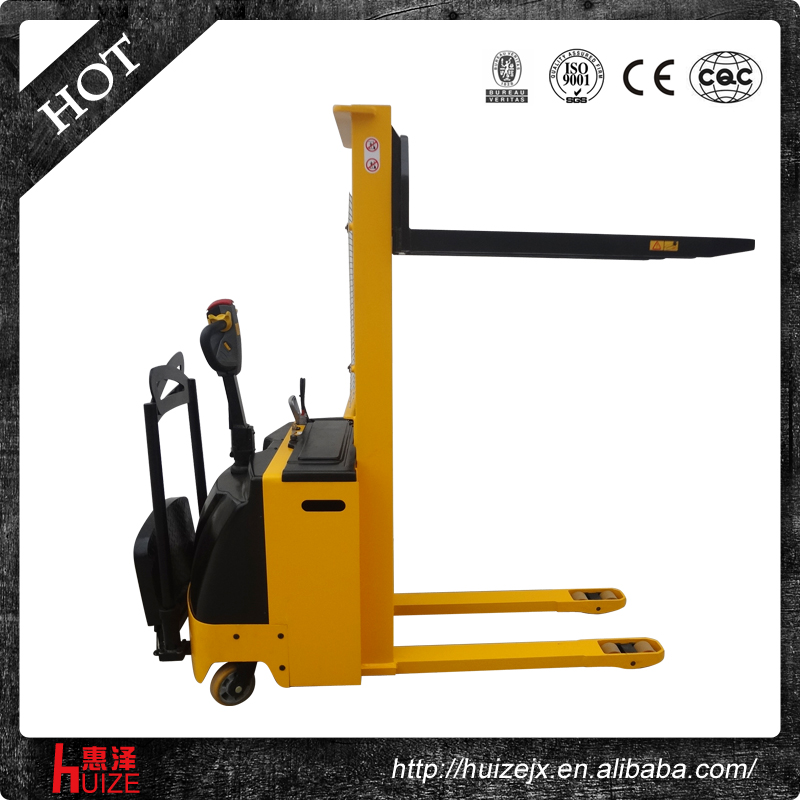 1.全電堆帶扶手,適用于單面托盤貨物搬運與堆高,前進后退全電動行走,電動升降,操作人員踏板站立式。